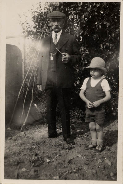Albert John Ralph in cap with pipe and his grandson Geoffrey Taylor | c.1935 |