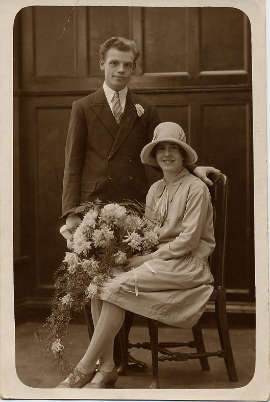 Wedding photograph of Henry Ivor Elms with his wife Freda Louisa Elms (nee Wilkins). Photographer H. M. Veale & Co. Bristol | 12th December 1927 |
