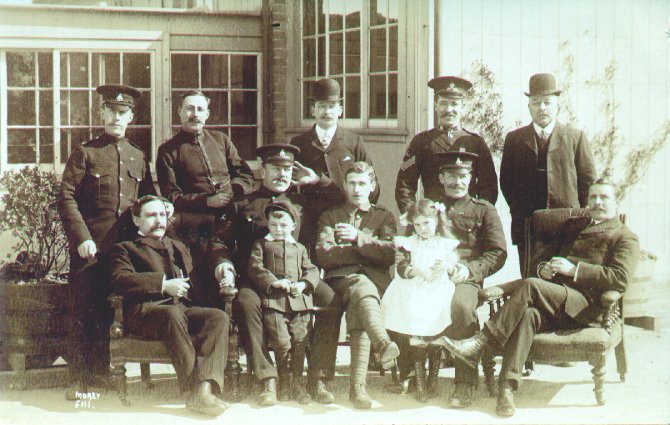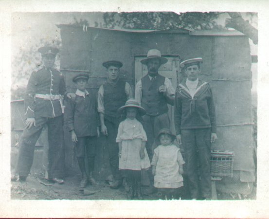Albert Ralph with his family. From left to right George (in army uniform), ?, James, Mabel, Albert, Ernest, Albert jnr (in navy uniform). George and Albert had swapped uniforms. | c. 1920 |