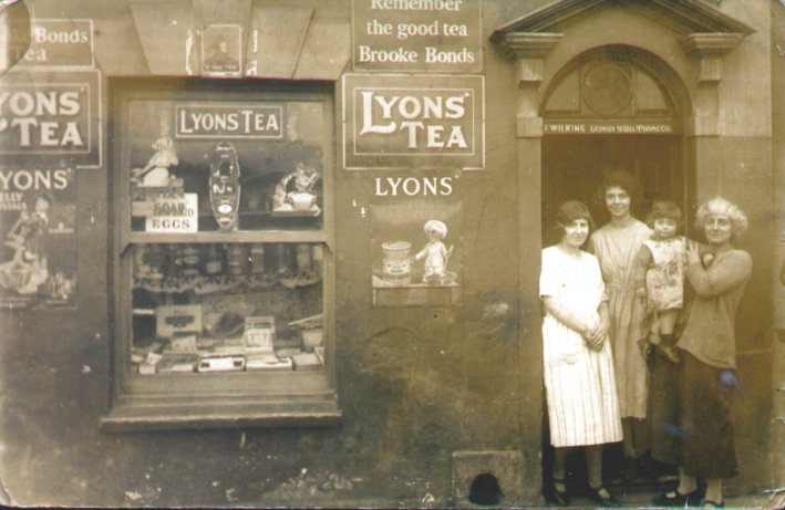 | 00017 | Florence Wilkins (nee Weston) outside her shop/house holding Derick, adopted son of Winifred, and daughters Freda (far left) and Winifred. | c. 1935 |