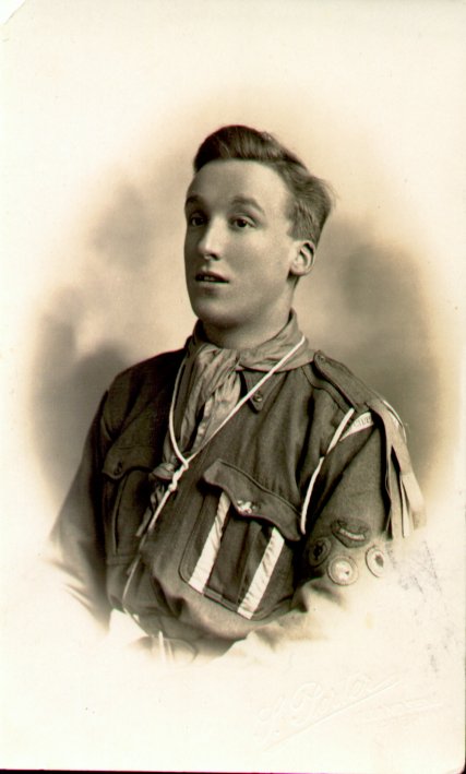 Jack Payne in scouts uniform for first World War. Photograhper J. Porter of Landsend, Chippenham, Wiltshire | c. 1916 |