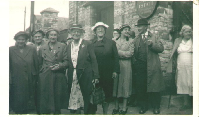 Left to right. Ernest Allen, Clifford Brown, ?, ?, Eileen Brown, ?,Phillip Brookbank, Bill Anstee (Bald), ?, Timothy Goldsworthy, Ethel Grace Payne (nee Boulton), Christopher Elms, Timothy Brookbank, Peter Brookbank, Alec Brookbank, Nancy Anstee, ?, Sheila Beddoe (Payne), ?, Keith Brookbank, Michael Beddoe, Heather Brookbank, Paula Goldsworthy, Taff Beddoe, ?, Julian Brookbank, Christopher Brookbank, ?, ?, Bridget Brookbank, ? , ?, Margaret Elms, Christine Taylor, ?, Brian Elms, Kenneth Taylor, Elizabeth Elms, David Parsons, Richard Parsons, Ralph ?, Winifred Jeffreys, Timothy Goldsworthy, Freda Elms, Denise Taylor, Heather Haywood, Ursula Chedgey, Amy Taylor, Sharon Taylor, Cecily Heap, Geoff Taylor, Ruth Chedgey, Jennifer Taylor (red coat), Roger Taylor, Albert wilkins, Julian Taylor, ?, ?, ?. | 31 March 1973 |