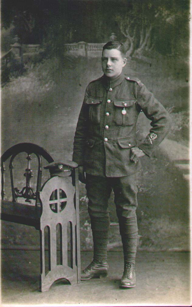 | 00041 | Badly damaged photograph of James Frederick Taylor 2nd. At the start of the first world war. After signing up under-age. | c. 1914 |