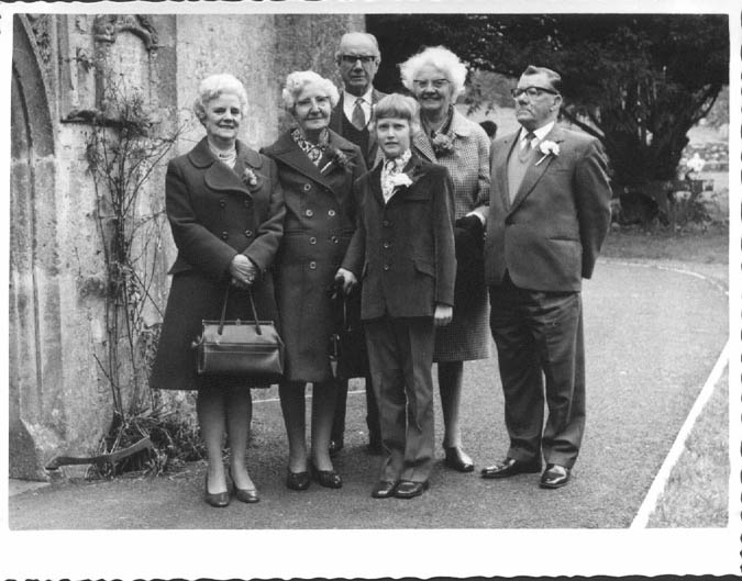 Left to right. Cecily Heap, Freda Wilkins, Albert wilkins, Christopher Elms, Winifred Jeffreys (nee Wilkins), Ernest Allen. | 31 March 1973 |