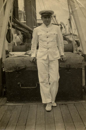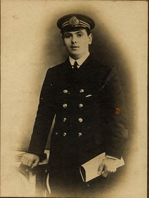 John Alexander Ross Brookbank in merchant navy uniform. | - |