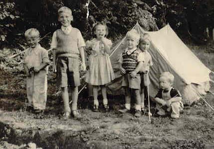 | 00053 00053 | Left to right. Back Row: Kenneth Brookbank, Julian Brookbank, Roderick Brookbank, Phillip Brookbank, Christopher Brookbank. Front Row: Keith Brookbank, Alec Brookbank, Peter Brookbank, Heather Brookbank. And Snitchy the dog. | 1964 |