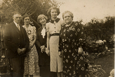 (Left to Right) Back row: Kathleen Millett, Violet Millett, Nora Millett, William Millett. Front row: Betty Brookbank, Keith Brookbank. | - |