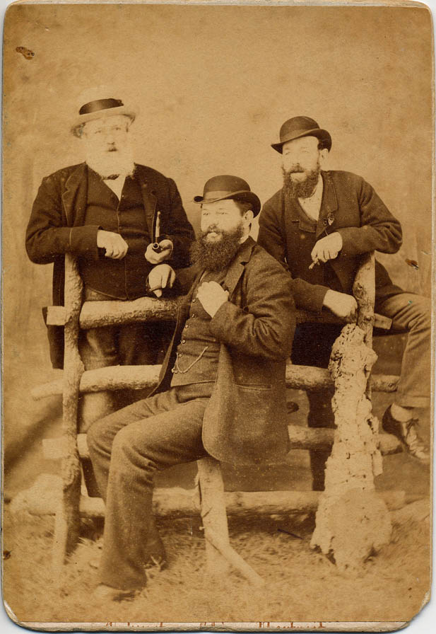 Inscription on reverse "Mr Boulter, Mr Marks and Father taken at Ilfracombe? July 1882" (almost certainly Edward Mitchell, see 00129). Photographer John Catford, Wilder Road, Ilfracombe. | July 1882 |