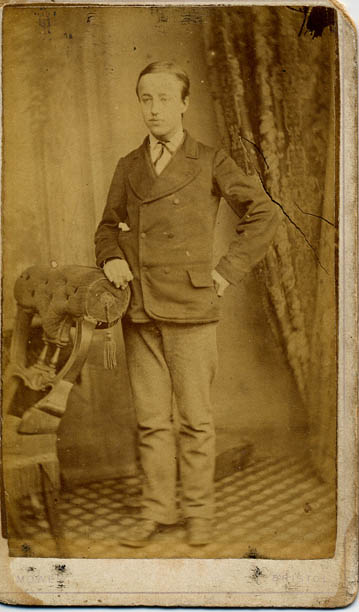 Unknown, possibly Edward or Herbert Mitchell son of Edward Mitchell. Photographer H. R. Willett, Lower Church Rd, Weston-S-Mare, also at Bristol. (Dated from photographers plate.) | c. 1895 |