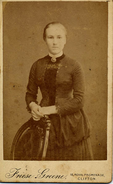 Possibly Florence Mitchell. Photographer Friese Greene, 16 Royal Promenade, Clifton, Bristol. (Dated from photographers plate.) | c.1885 |