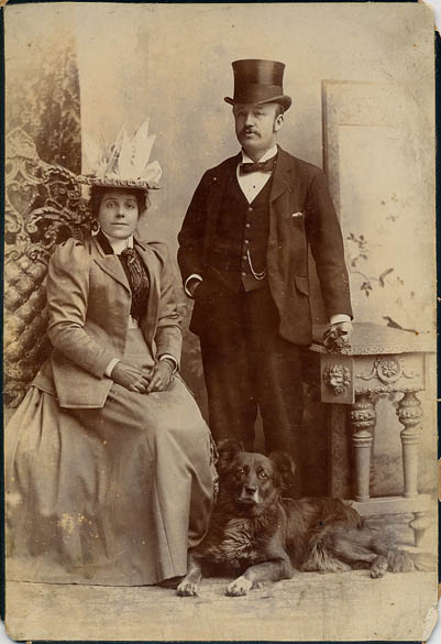 Florence Harriet Mitchell and Isidore John Millett, with a dog. Photographer Willett of Bristol. | c.1900 |
