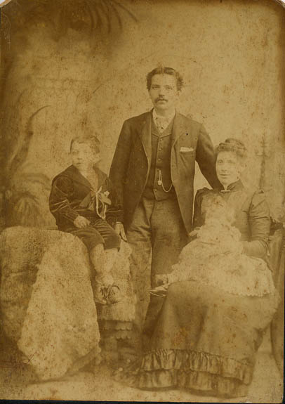 Possibly Charles and Amelia Robinson (nee Mitchell) with children Mark and Florence. Photographer H. R. Willett 5 Bristol Bridge & 44 High Street, Bristol. (Dated from photographers plate.) | c. 1900 |